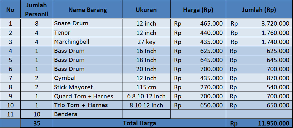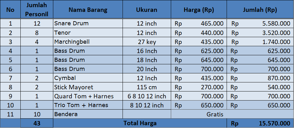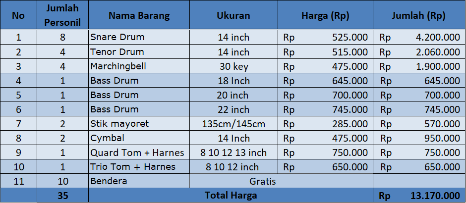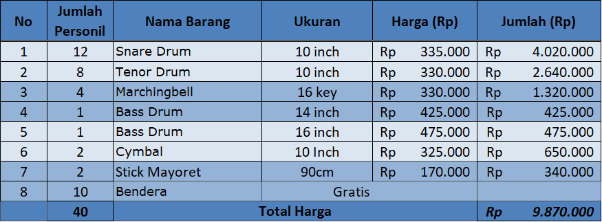Harga Drum band SMA Kualitas TERBAIK
